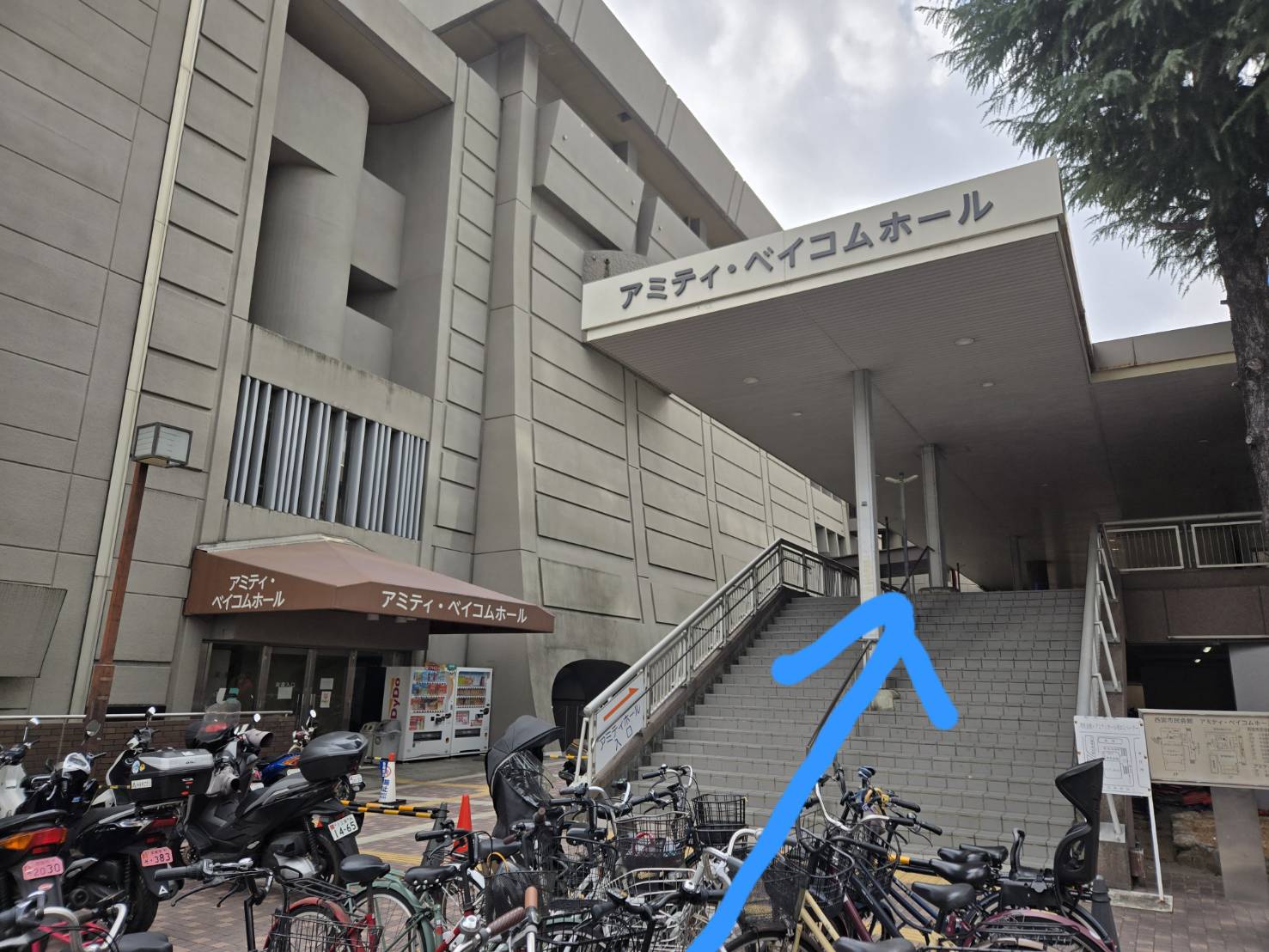 アミティ・ベイコムホールが見えましたら2階への階段を上がった先がエントランスとなります
